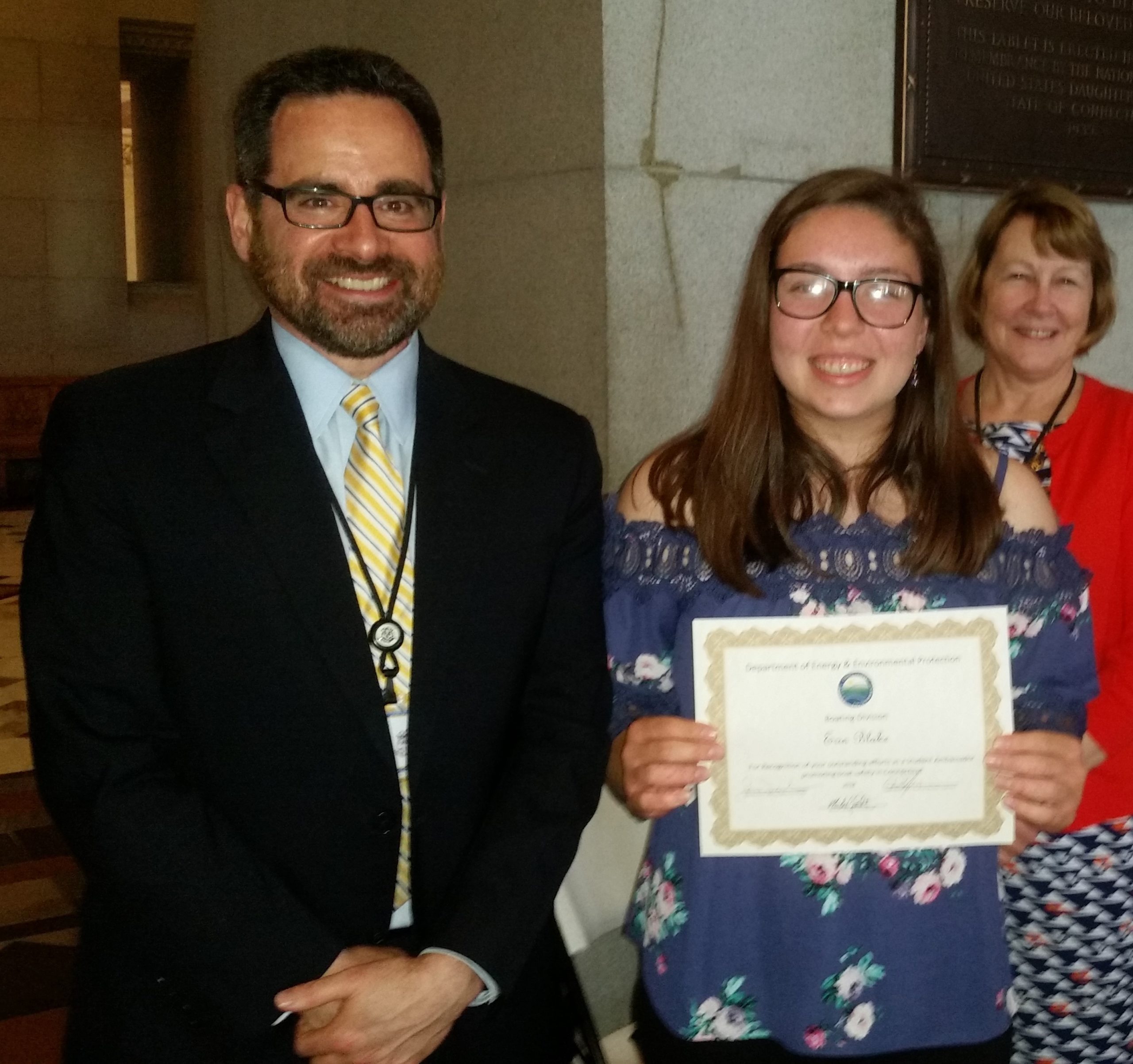 At an event held at the State Capital, BET 11th grader, Erin Blake, as honored for volunteering to be Grasso’s Safe Boating Ambassador. She was awarded a certificate from CT-DEEP Commissioner, Rob Klee.